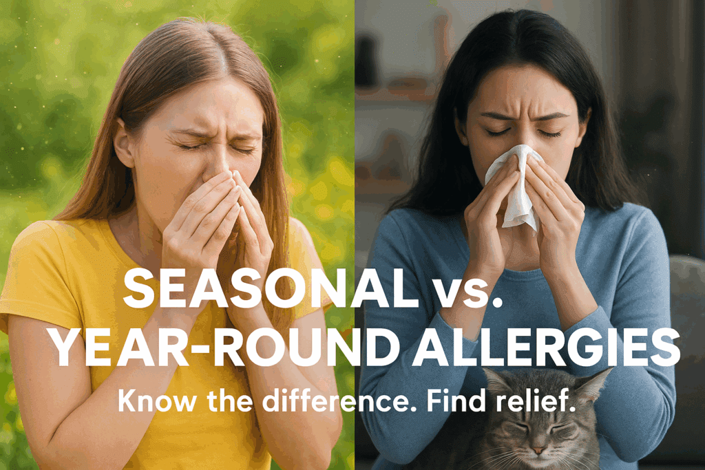 👉 Bottom line: Seasonal allergies flare up with pollen and weather changes, while year-round allergies stick around daily due to indoor triggers. Knowing the difference helps you manage symptoms better and get lasting relief.